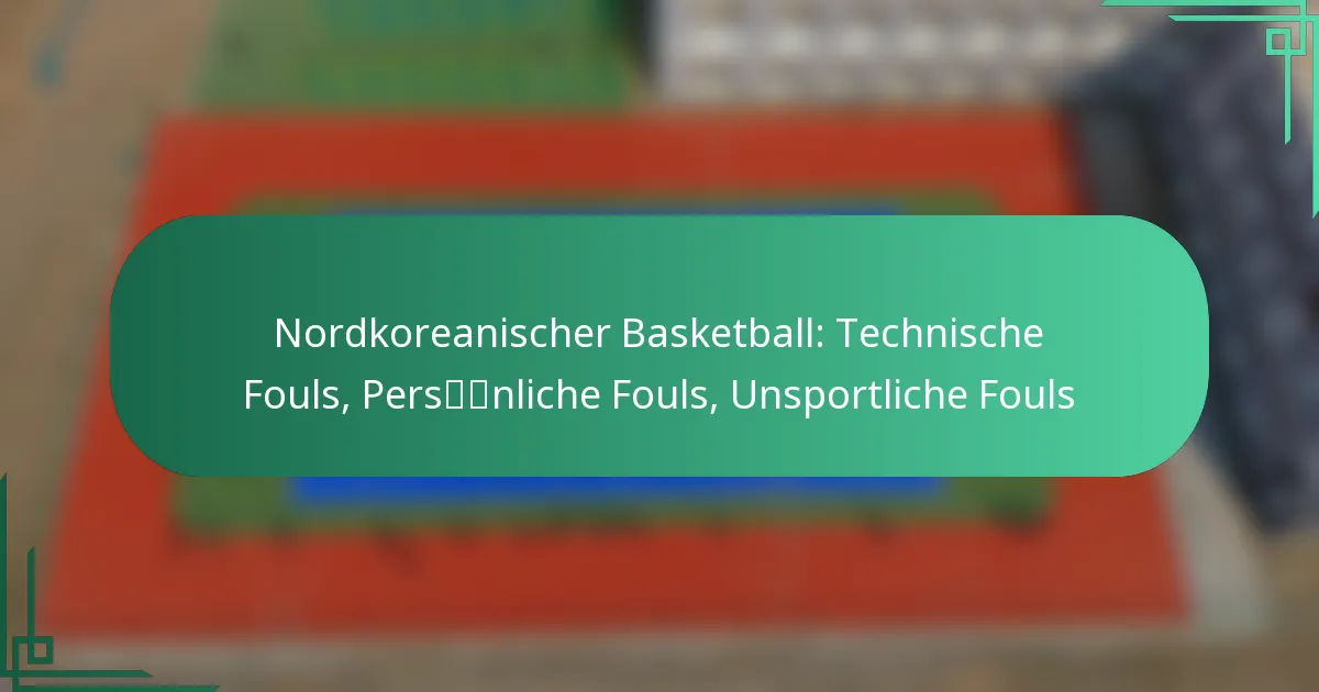 Im nordkoreanischen Basketball werden Fouls in technische, persönliche und flagrante Arten unterteilt, die jeweils unterschiedliche Auswirkungen auf das Spiel haben. Technische Fouls werden für unsportliches Verhalten oder Regelverstöße verhängt, die keinen körperlichen Kontakt beinhalten, während persönliche Fouls illegale körperliche Interaktionen umfassen, die den Spielfluss stören können. Flagrante Fouls, die durch übermäßigen oder gewalttätigen Kontakt gekennzeichnet sind, werden mit strengen Strafen belegt, um die Sicherheit der Spieler zu priorisieren und die Integrität des Sports zu wahren.